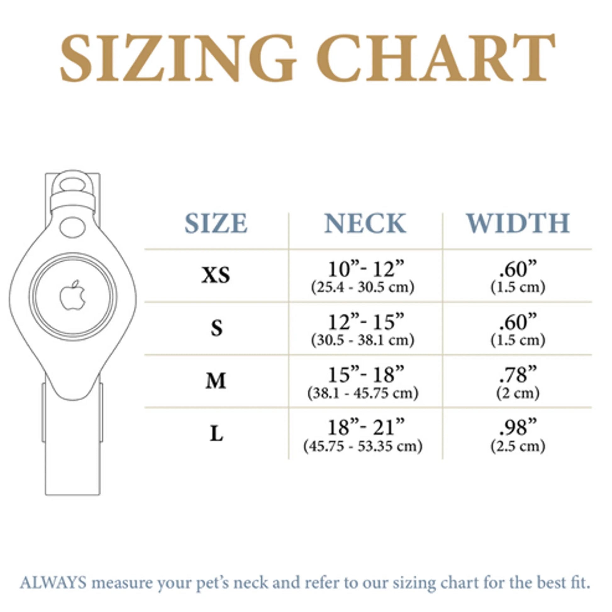 How to Choose the Right Size: To make sure you are picking the right size of the Apple Airtag dog collar holder for your pet, make sure to wrap a soft measuring tape around the widest part of the dog's neck and leave a 2-finger gap to determine the right size with a comfortable fit.